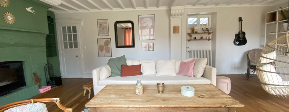 When we arrived, what struck us was the cottage-like charm of this house. We immediately thought: retro English with touches of nature! Do you get the idea?